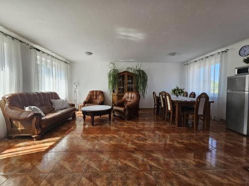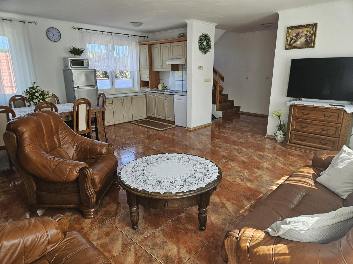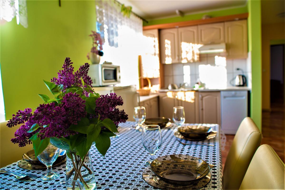 – Duży salon z pełni wyposażonym aneksem kuchennym oraz jadalnią,