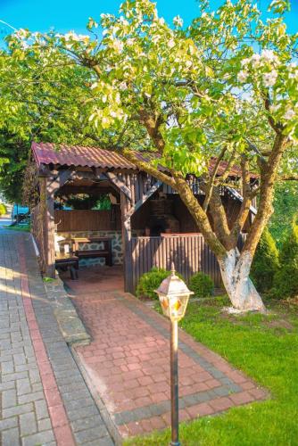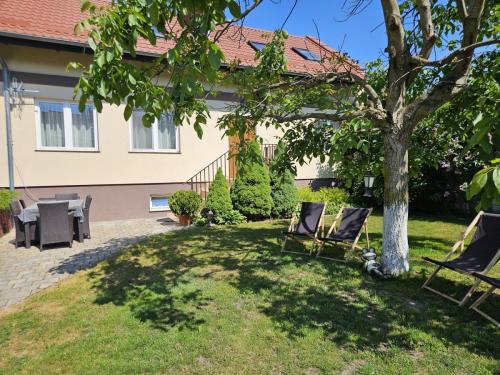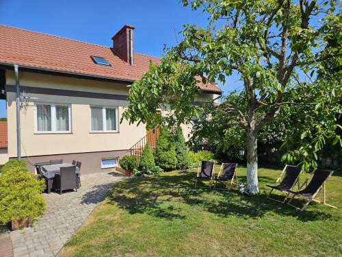 Przy domu znajdują się meble ogrodowe oraz leżaki. Do dyspozycji gości dostępne są 3 miejsca parkingowe na ogrodzonej posesji oraz ogólnodostępna wiata grillowa.